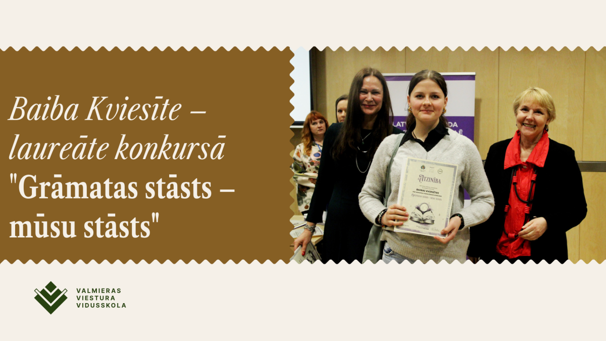 2026.gada 20.februārī Baiba Kviesīte, no 8.a klases, devās uz Latvijas Nacionālo bibliotēku, lai uzzinātu, kāds ir viņas rezultāts, sniegums radošo darbu konkursā, jo tas tika turēts noslēpumā. Kamēr citi pozēja skolas fotogrāfijām, Baiba savus attēlus uzņēma konkursa apbalvošanas laikā. Konkursa apbalvošanas pasākumā bija iespēja baudīt un praktiski darboties, lai papildinātu savas zināšanas. Izbaudījām iespēju rakstīt uz rakstāmmašīnas, veidot īgnos tekstus, veidot pastkartes, kā arī uzzinājām, kas jāievēro, lai uzstātos publikas priekšā.