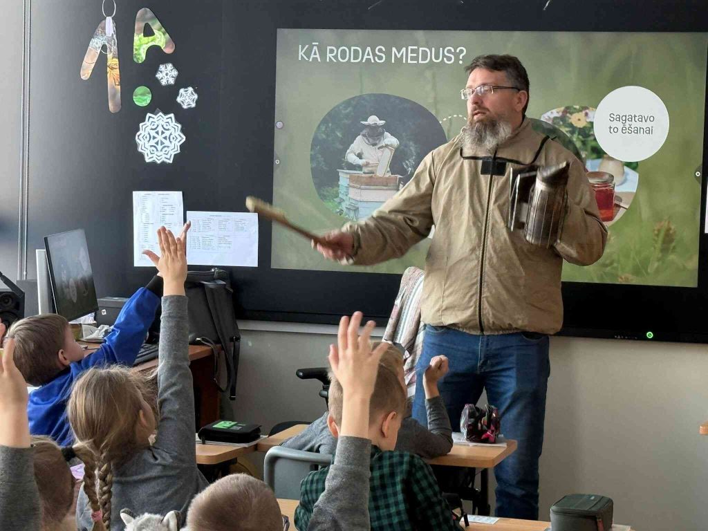 Gan izzinoša, gan salda 16.janvārī bija izglītojošā nodarbība “Eiropas medus brokastis”, kuru skolas pirmklasniekiem vadīja biškopis Ainārs Mitrofanovs.