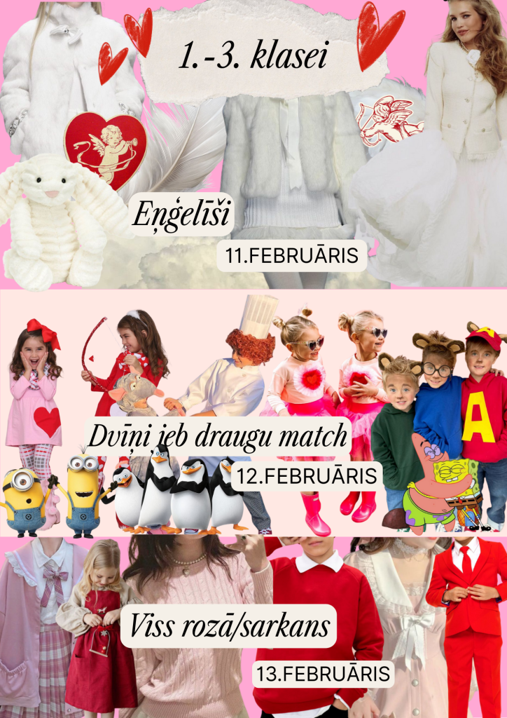 No 11. līdz 13. februārim aicinām visus skolēnus tematiski saposties un radīt sirsnīgu noskaņu skolā.